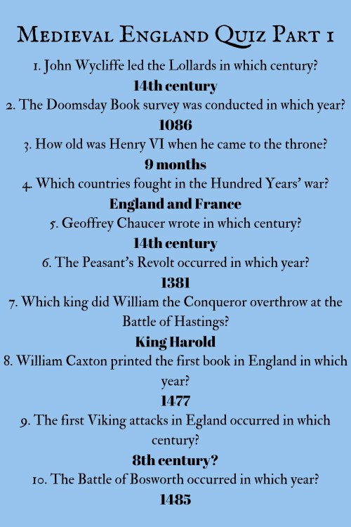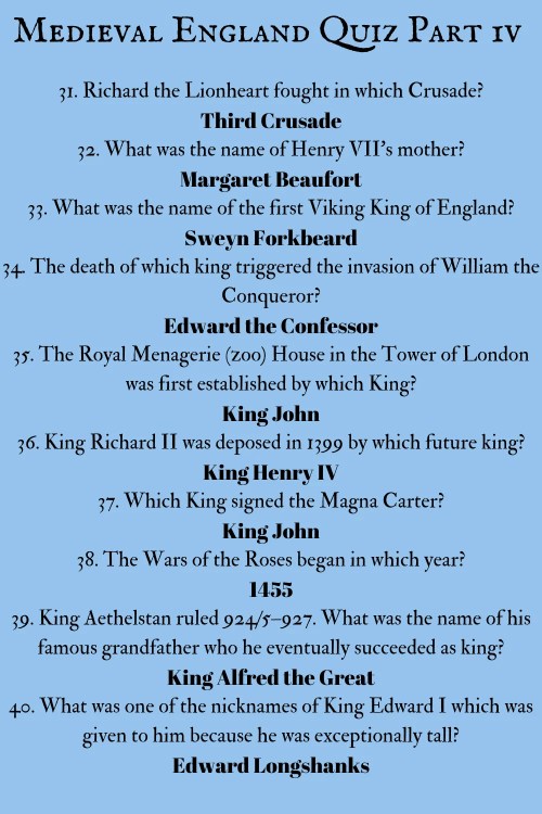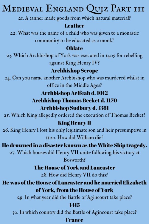 How did you do in my Medieval England Quiz? Let us know in the comments below.